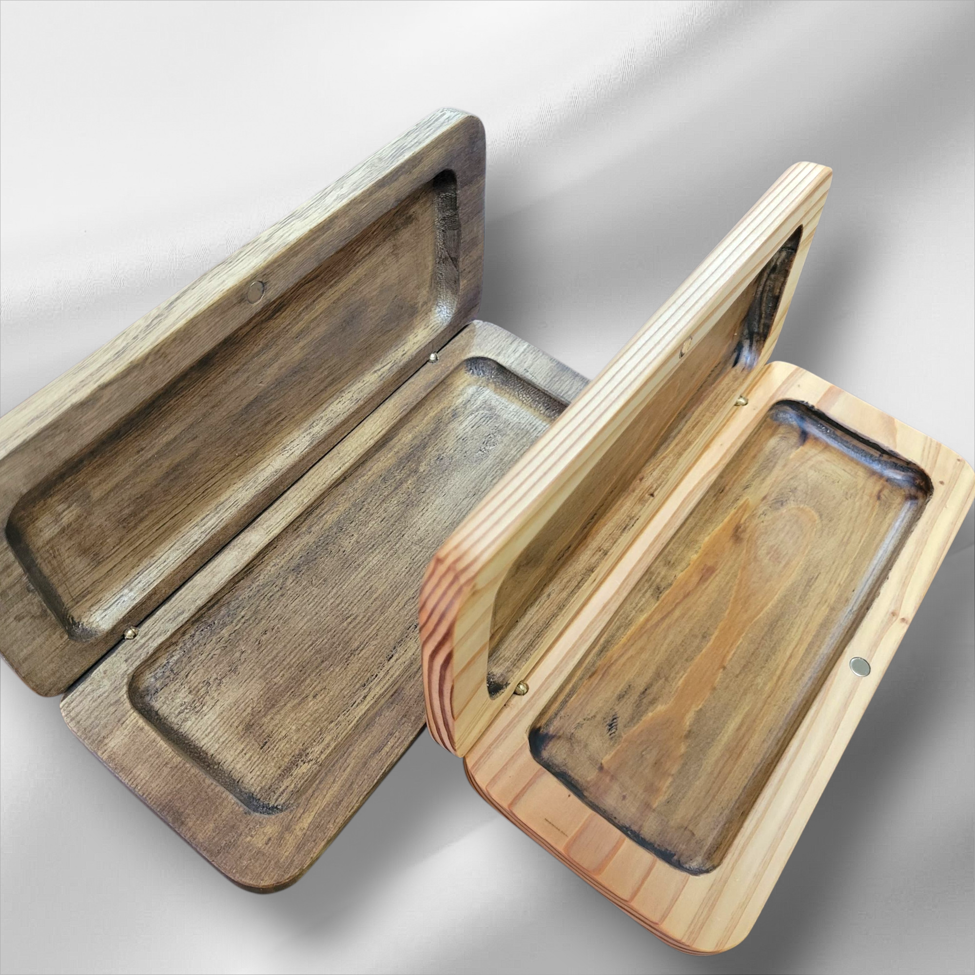 隠しヒンジのデザインにより、外観はスッキリとした仕上がりになっており、シンプルでありながら洗練された印象を与えます。また、ひとつひとつの木目が異なり、個性豊かな表情を持ったペンケースとなっています。
