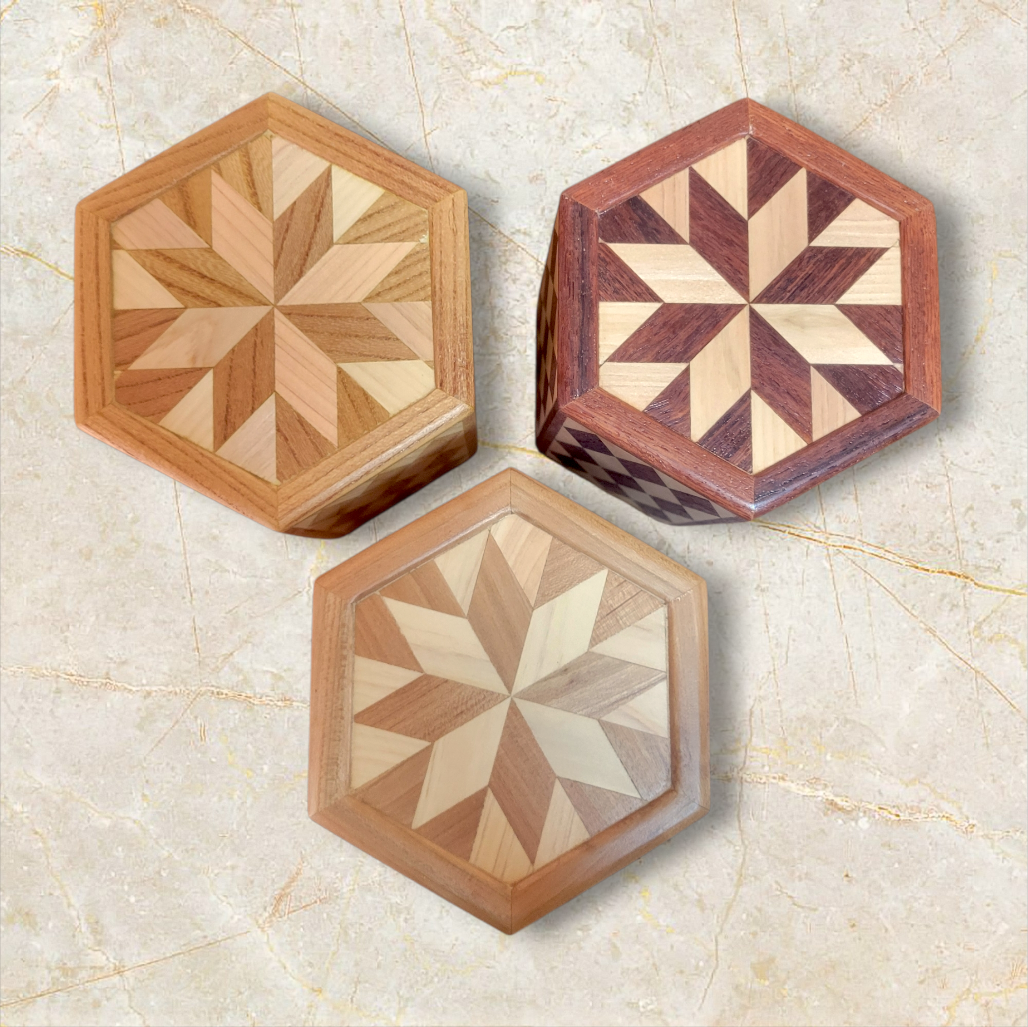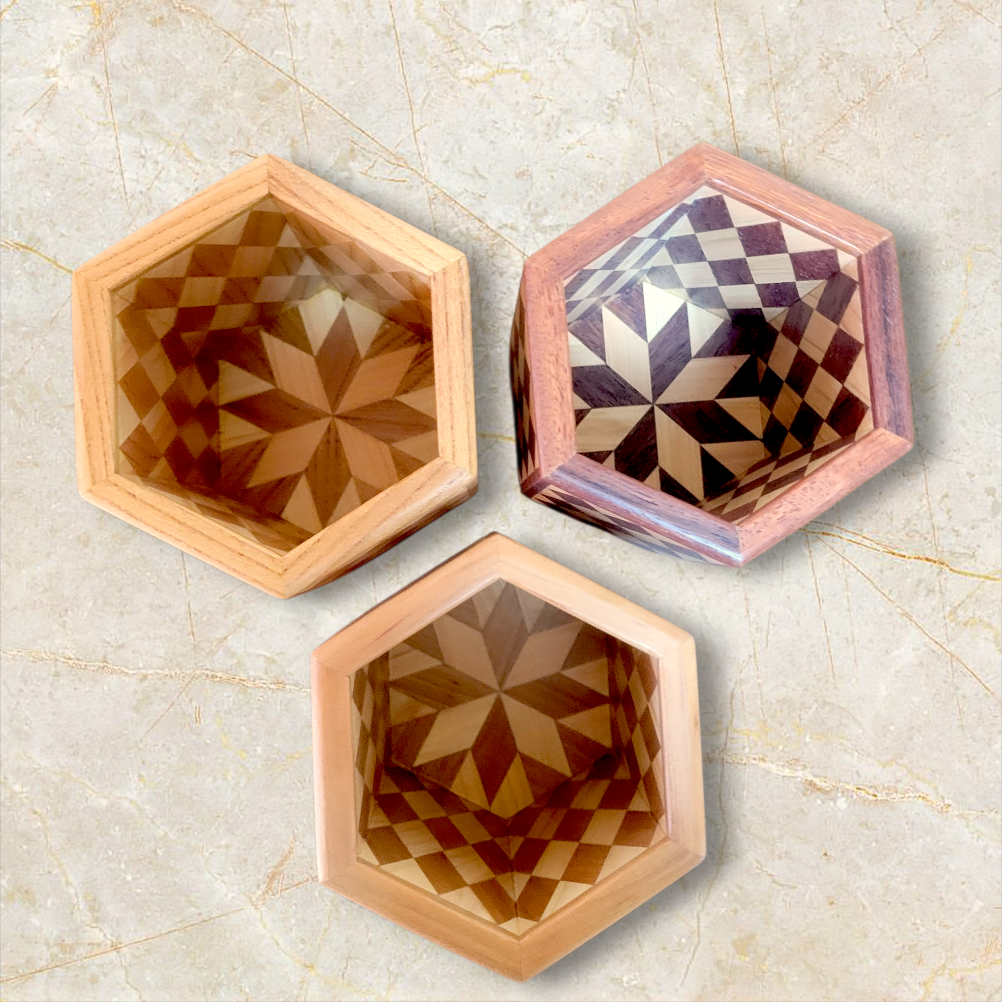 銘木寄木特有の美しい木目と、使うほどに手に馴染む温もりが特徴で、シンプルながらも存在感のあるデザインが魅力です。