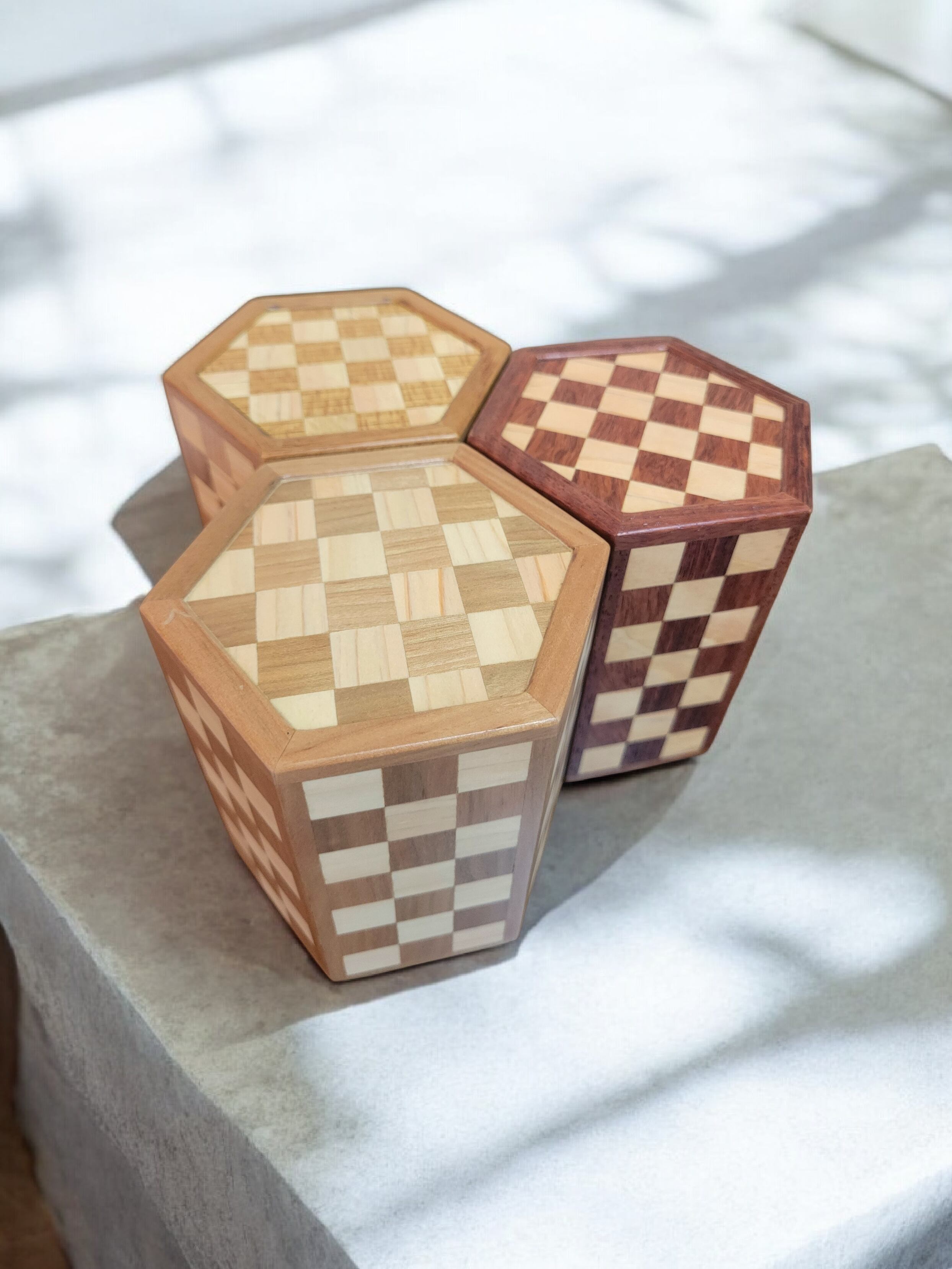 銘木寄木特有の美しい木目と、使うほどに手に馴染む温もりが特徴で、シンプルながらも存在感のあるデザインが魅力です。